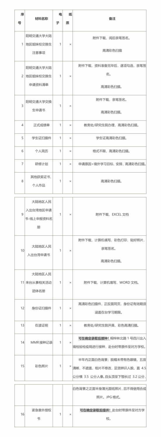 (2)3月26日前,校内评审,确定拟推荐人选,在港澳台办公室网站进行公示,经公示无异议的学生按以下要求准备赴台申请材料: